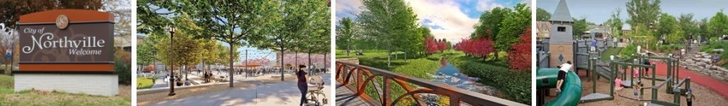 - Final Site Plan details for Northville Downs Development was finalized & approved in ’23 which will include a diversity of residential choices, along with expanded commercial/retail space. A transformational city park and Riverwalk greenspace will be constructed immediately, providing major community benefits for our town.